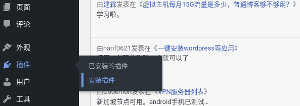 等待域名解析生效后就可以测试网站访问了,登录WordPress后台就可以在线安装主题插件。WordPress的后台地址是: