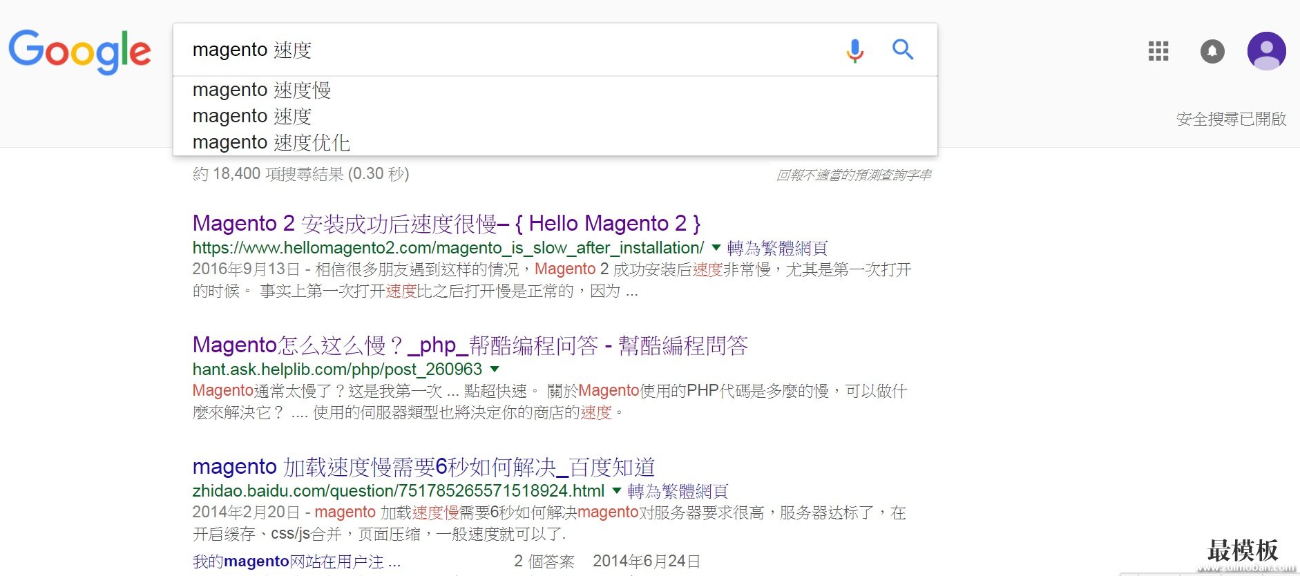 Magento的网站运行速度一般慢,如果安装在一些规格较低的主机上或者主机容量不充裕,那更是一件糟糕的事情。大家在google搜寻关于”Magento速度”时,显示出的建议搜寻结果都是关于「Magento速度慢」、「Magento速度慢」,可想而知大家使用Magento后都十分关注网站速度问题。